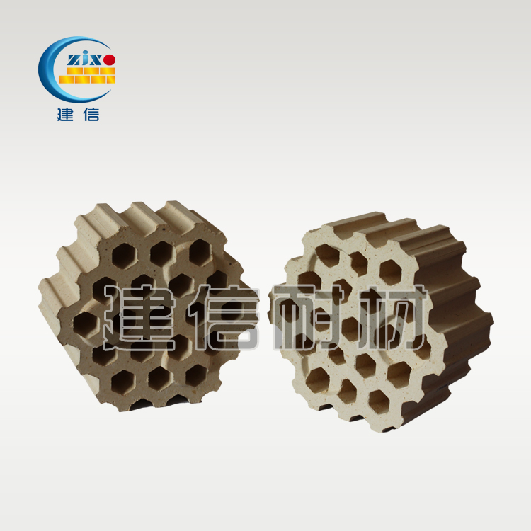 建信耐材生產(chǎn)的格子磚是以耐火粘土為主料制成的鋁硅酸鹽耐火材料,Al?O?含量30%-48%,耐火度1580-1770℃,荷重軟化溫度1250-1450℃。其特點包括顯氣孔率適中(20%-30%)、抗熱震性優(yōu)良(1100℃水冷循環(huán)>15次)、抗酸性熔渣侵蝕及高溫體積穩(wěn)定性好,兼具較高機(jī)械強(qiáng)度(耐壓>25MPa)與較低熱導(dǎo)率。通過異形結(jié)構(gòu)設(shè)計(如蜂窩狀、波紋板),優(yōu)化熱交換效率。